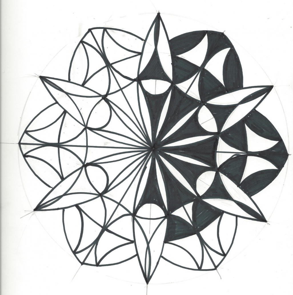 Entgegen dieser üblichen, wöchentlichen 20-Minuten-Zeichnungen, besteht die aktuelle Aufgabe in der Zeit, in der wir uns live nicht sehen können, im Zeichnen von Mandalas und Zentangles.